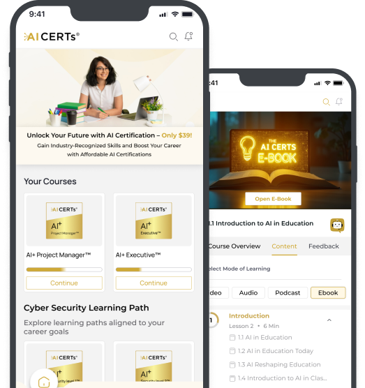 The AI CERTs® Mobile App is an all-in-one AI learning platform offering certifications, training resources, and mentorship in AI, Blockchain, and Cloud - accessible anytime, anywhere from your mobile device.