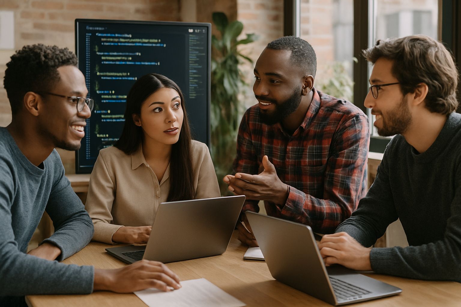 AI-driven workplace showing collaboration between humans and intelligent systems in 2025.